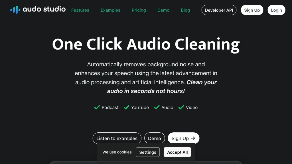 Audo Studio is an AI audio tool that offers one-click audio cleaning features. It can remove background noise, enhance speech, and use advanced audio processing to clean audio in seconds. It is suitab..
