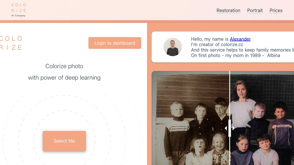 Colorize.cc is an AI tool that restores and enhances old photos, removes noise, and restores faces through colorization, photo restoration, and color portrait generation…