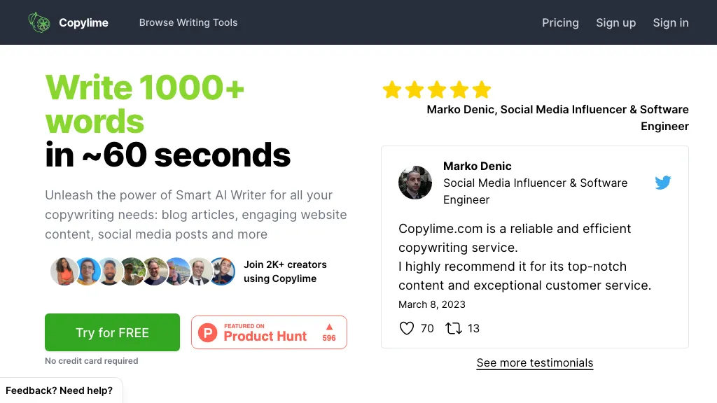 Copylim is an AI tool that generates content and offers features like headline creation and rewriting existing content, with a free trial and pay-as-you-go pricing…