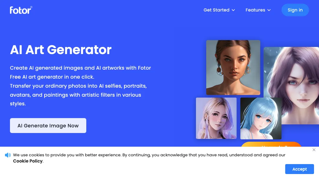The AI Art Generator by Fotor allows users to input text prompts or upload photos to quickly and easily transform them into various art styles, including photorealistic, illustrative, cartoon, 3D, and..
