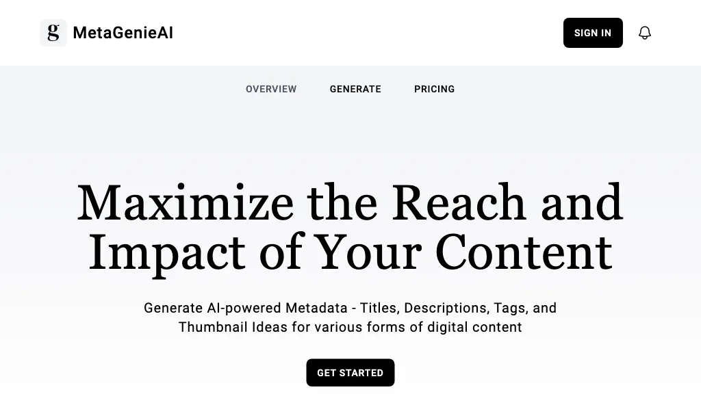 Metagenieai is an AI-powered tool that simplifies content creation and improves discoverability through optimized metadata. It generates titles, descriptions, tags, and thumbnails in one click and offers multilingual cap..