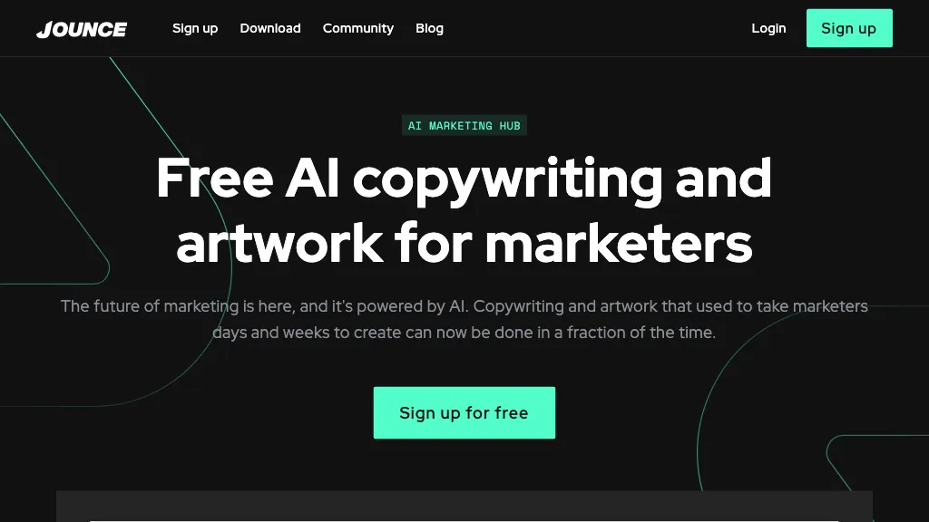 Jounc is an AI-powered copywriting and art market tool that helps create professional and effective content in a simplified manner, saving time and improving quality. It offers customizable templates,..
