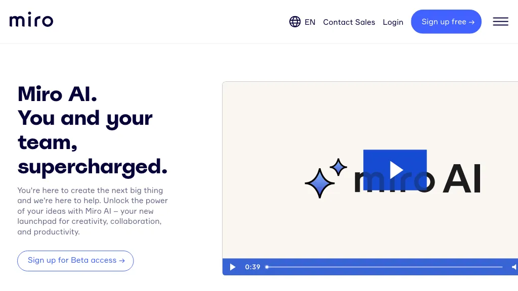 Miro AI is an AI tool that enhances creativity, collaboration, and product development through visual word and image generation, sticky note clustering, feedback, and learning from the Miro community…