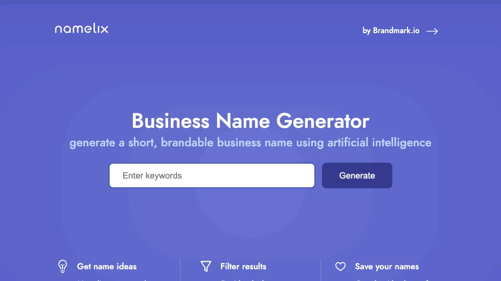 Namelix is an AI tool that generates short, brandable business names based on keywords and domain extensions. It also creates logos using AI…
