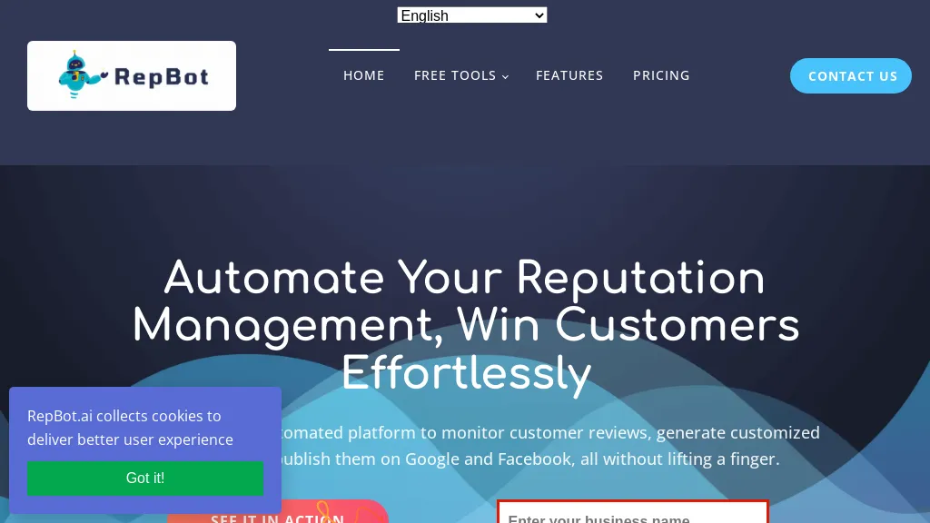 RepBot.ai is an automated online reputation management tool that monitors customer reviews, generates customized responses, publishes them on Google and Facebook, detects negative reviews for removal, and tracks over 100..