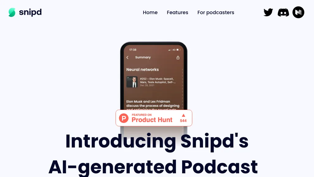 Snipd is an AI tool that generates short audio summaries for podcast episodes.The tool helps listeners find key insights and interesting parts of an episode.Currently, summaries are available for ..